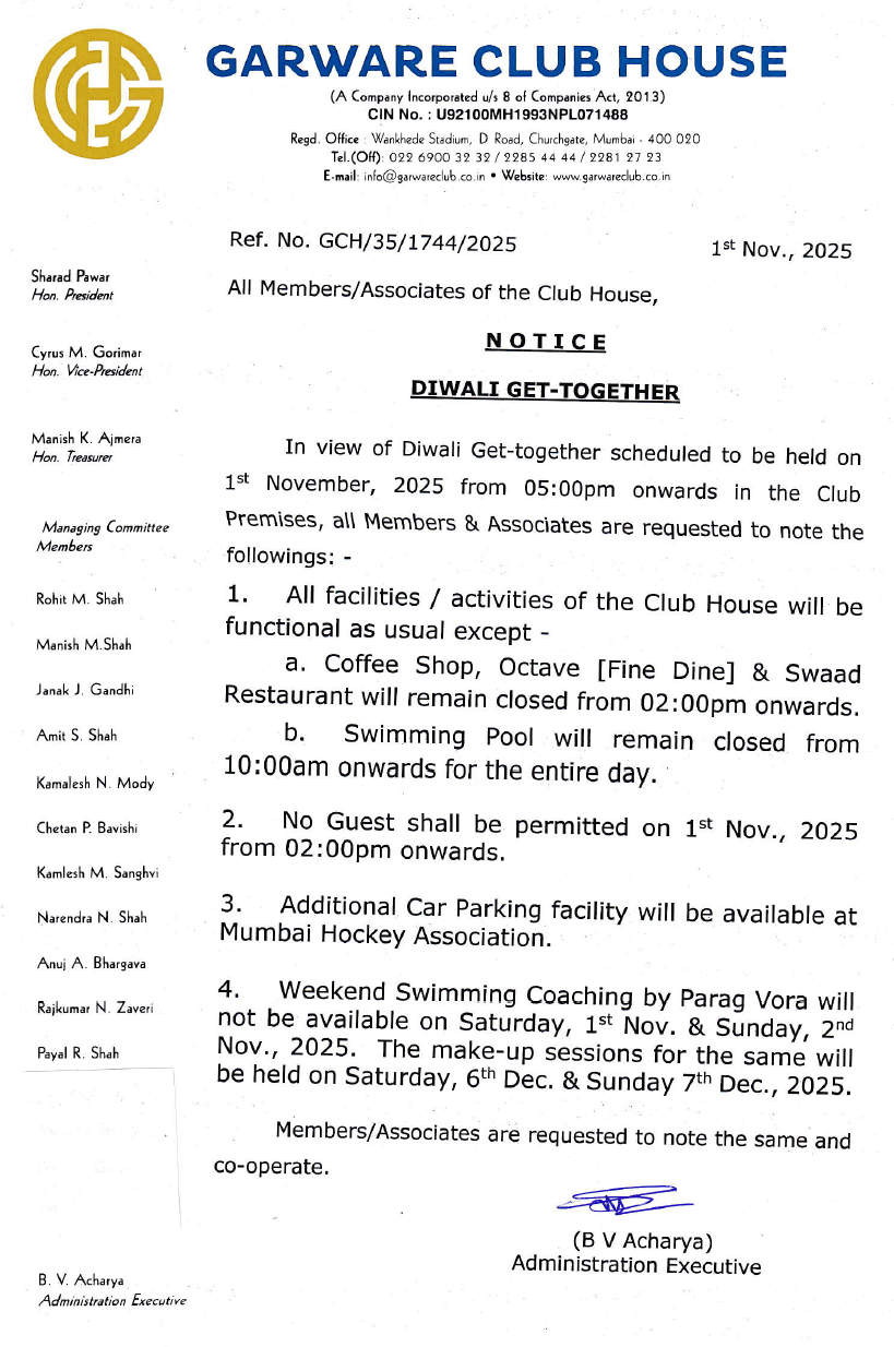 Notice Dated 01.11.2025 Regarding Diwali Get-together