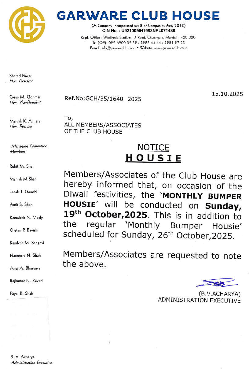 Affiliation / Reciprocal Arrangements – Newera Goa Gymkhana Club