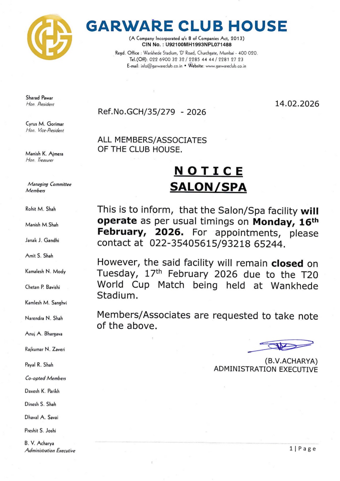 Notice Dt.14.02.2026 Regarding Salon/Spa