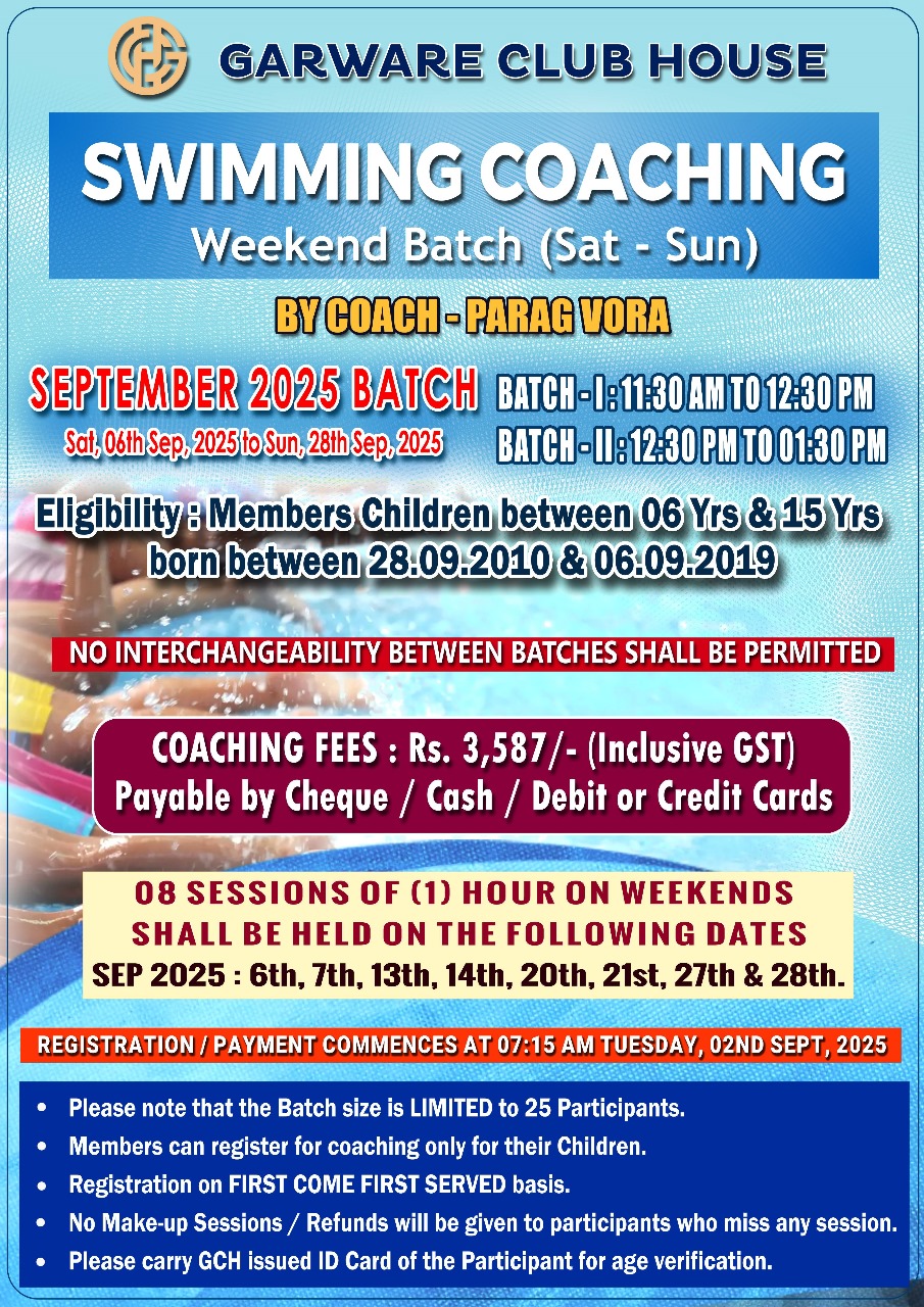 Weekend Swimming Coaching by Coach Parag Vora | September 2025 Batch