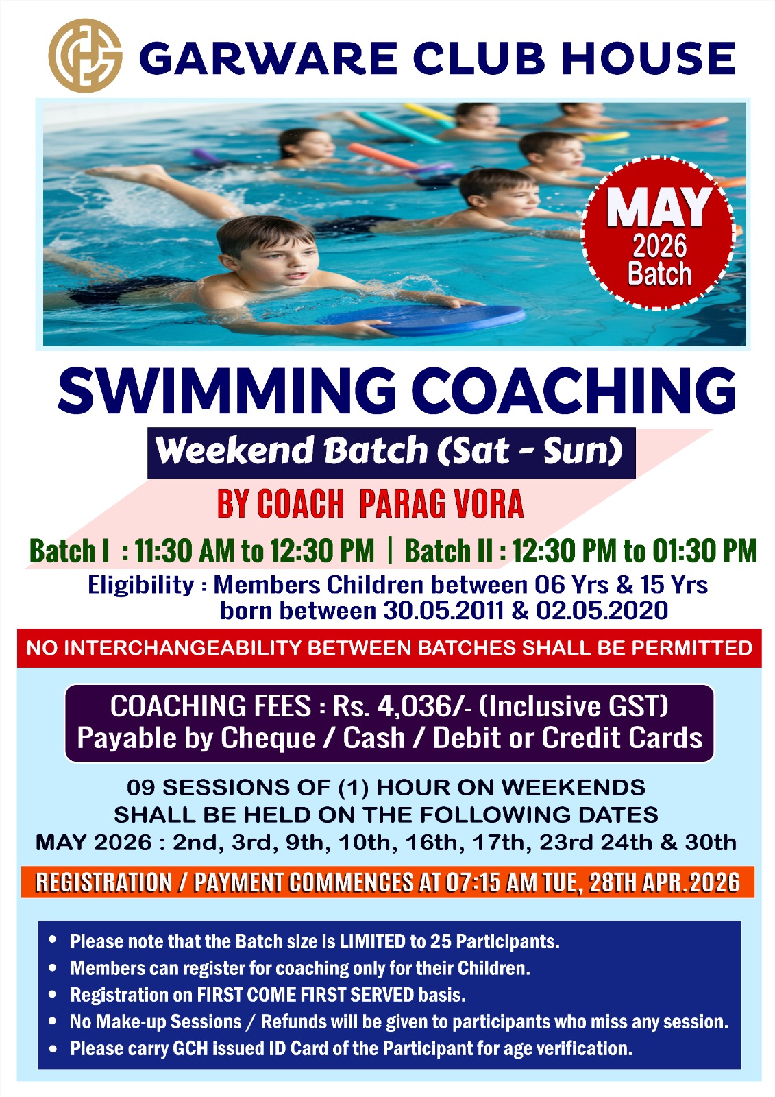 Weekend Swimming Coaching by Coach Parag Vora – May 2026 Batch