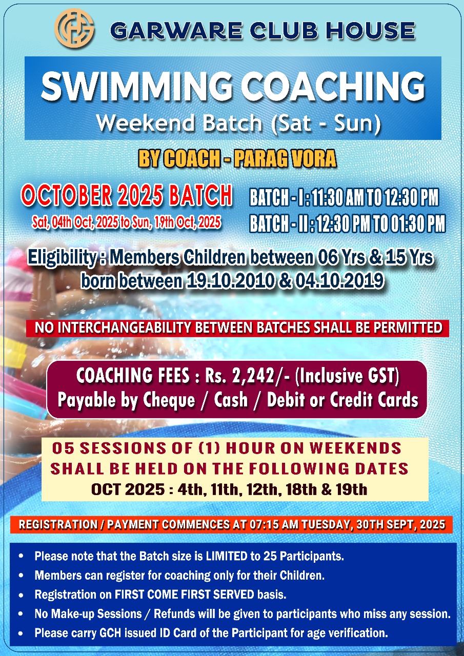 Weekend Swimming Coaching by Coach Parag Vora – Oct 2025 Batch